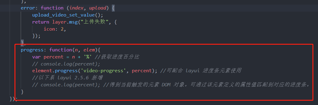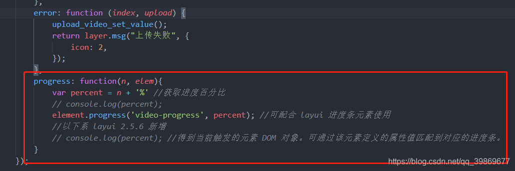 上传视频属于大文件上传了,总不可能吧进度条干掉吧,于是经过一番查询得知: