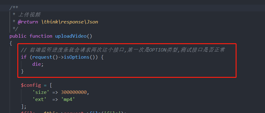 当监听上传进度并且需要跨域时,会先使用OPTION类型测试一下接口是否正常(状态200)