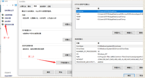 1、右键我的电脑,点击最下面的属性,之后再弹框里点击高级系统设置,再点击环境变量