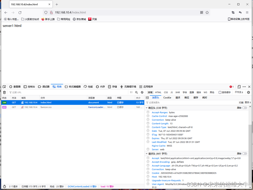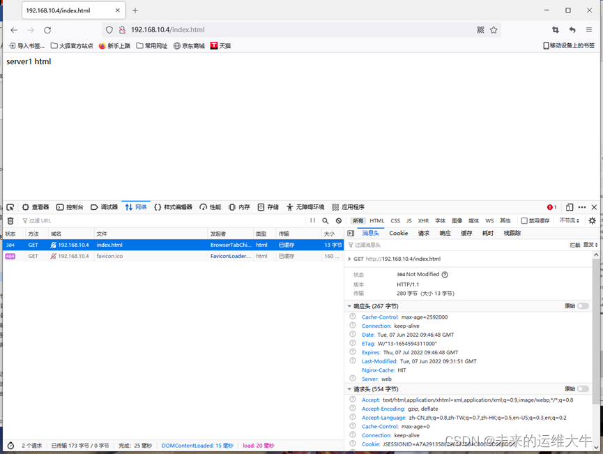 若只有一台客户端要验证负载均衡,可以先关闭缓存和保持session会话。或者在客户端浏览器中访问不是缓存的类型文件(如index.jsp)