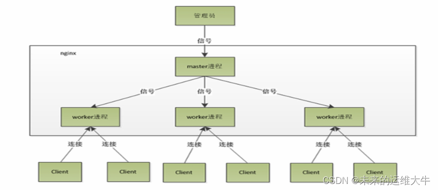 (5)Master/Worker结构:一个master进程,生成一个或多个worker进程。
