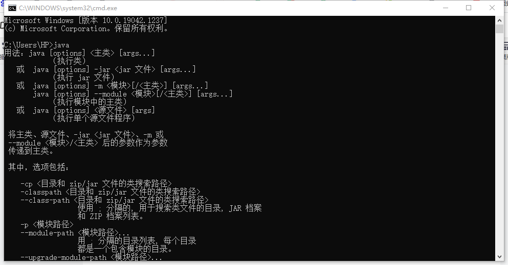 2.输入java和javac,如果没问题会显示以下内容: