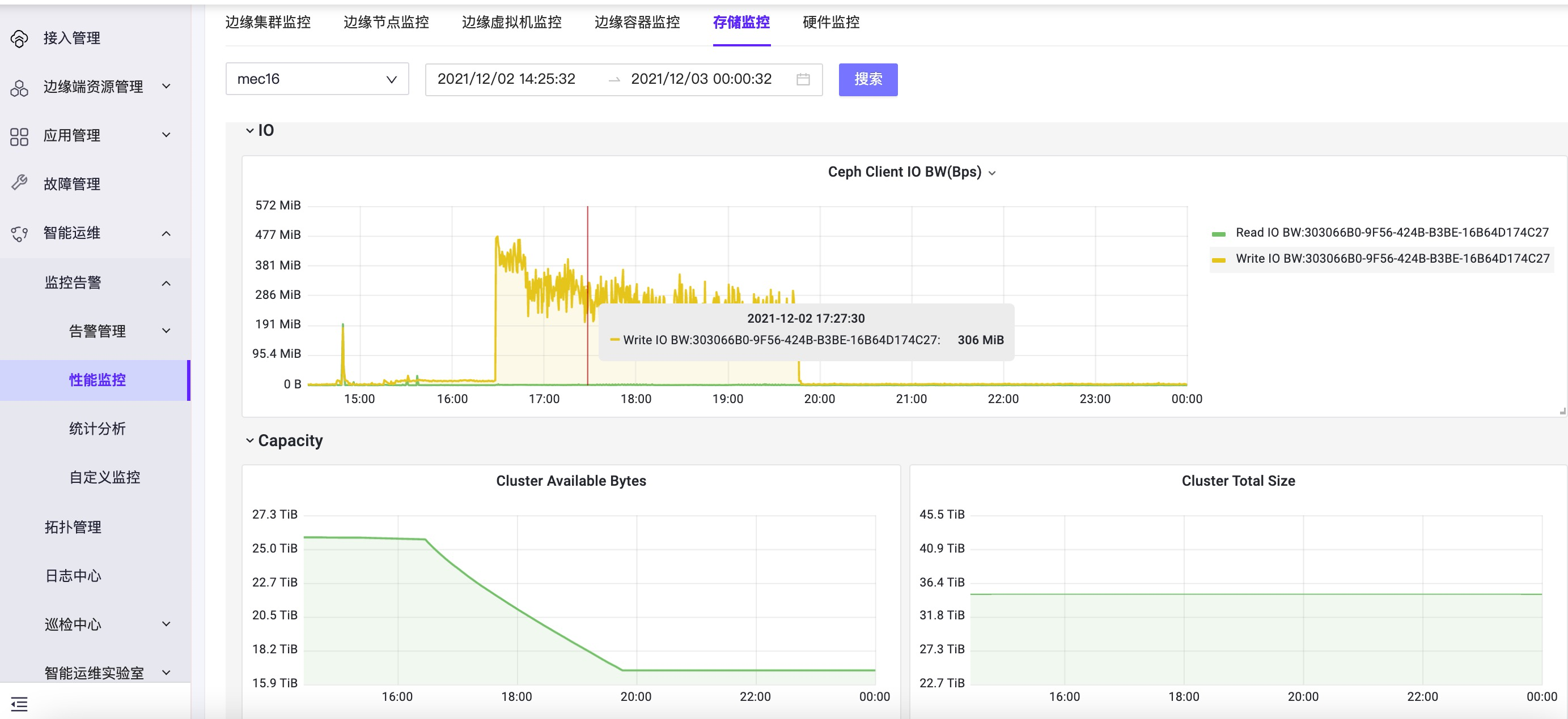 11. 登录cmo系统,智能运维 > 监控告警 > 性能监控 - 存储监控