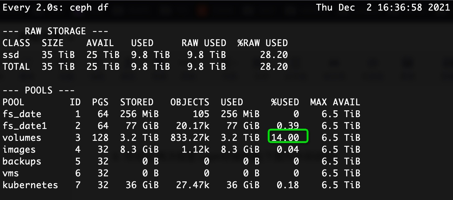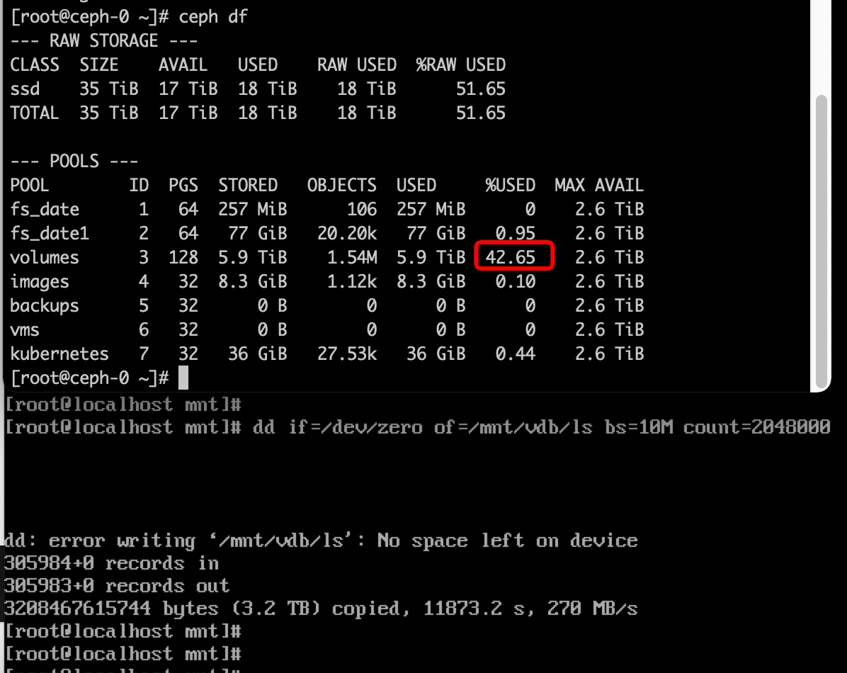 10. 写完磁盘后,再次检查 ceph存储容量