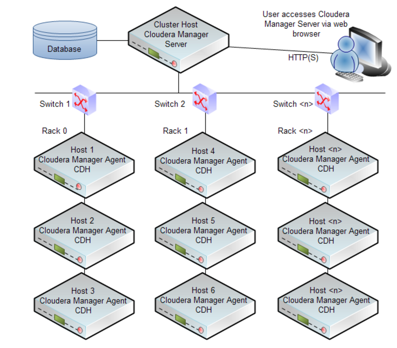 - Cloudera Manager则是为了便于在集群中进行Hadoop等大数据处理相关的服务安装和监控管理的组件,对集群中主机、Hadoop、Hive、Spark、Kafka、Hue、Hbase等服务的安装配置管理做了极大简化。