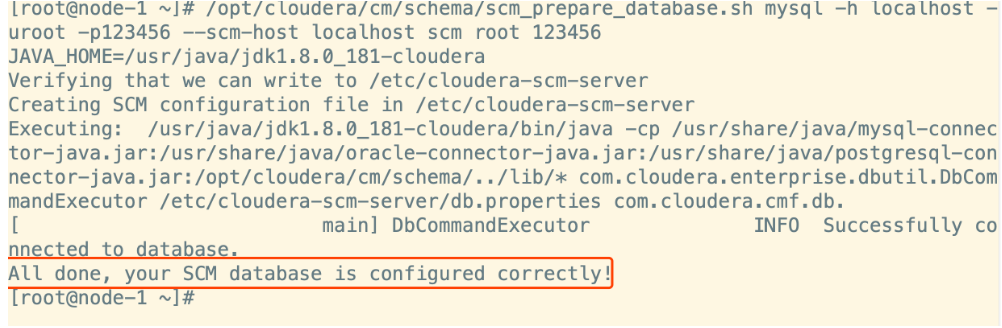 /opt/cloudera/cm/schema/scm_prepare_database.sh mysql -h localhost -uroot -p123456 --scm-host localhost scm root 123456