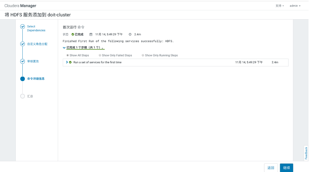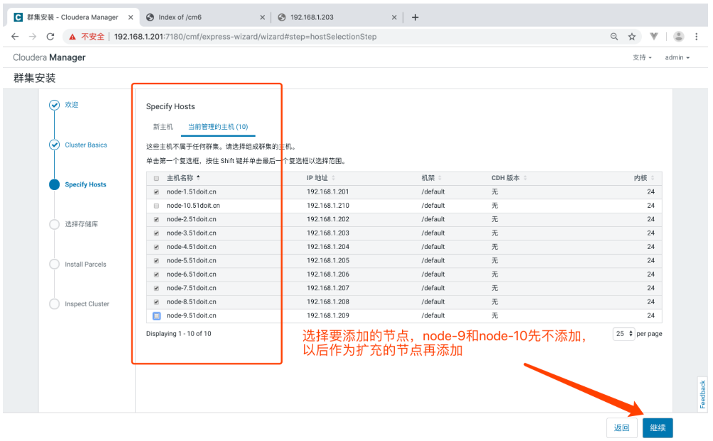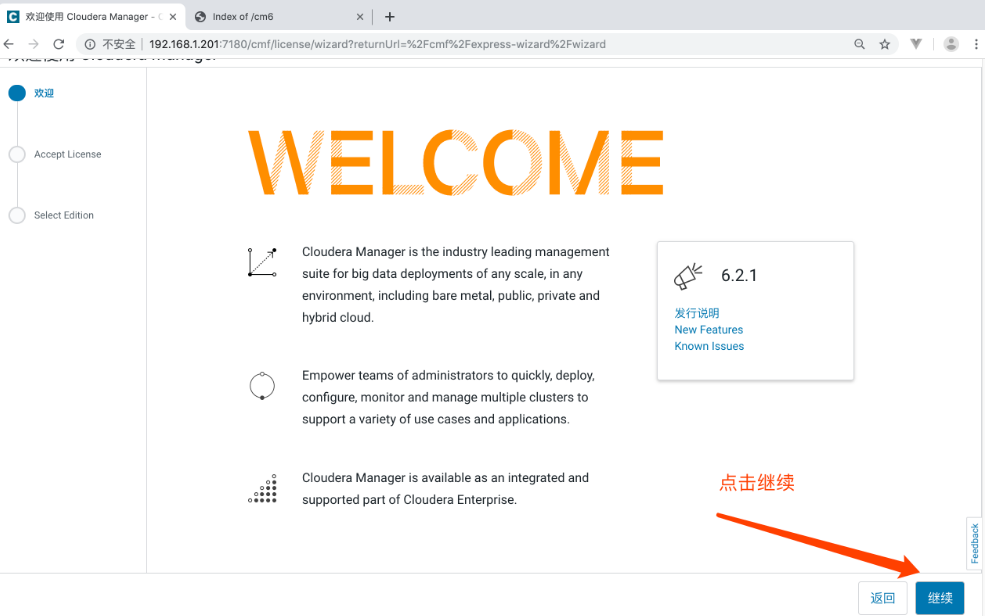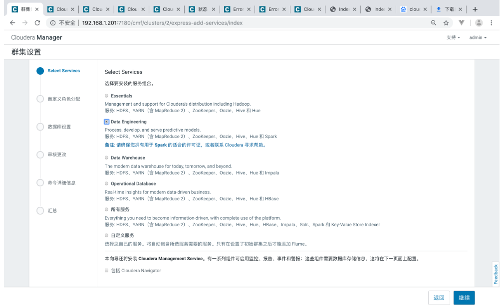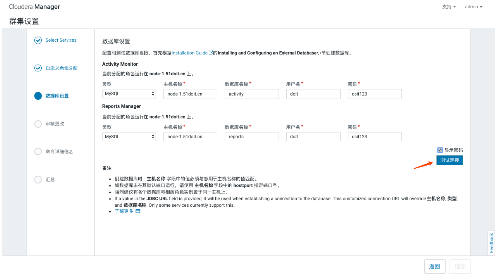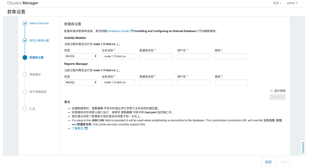 - 使用浏览器访问主节点的7180端口,用户名密码默认都是admin
