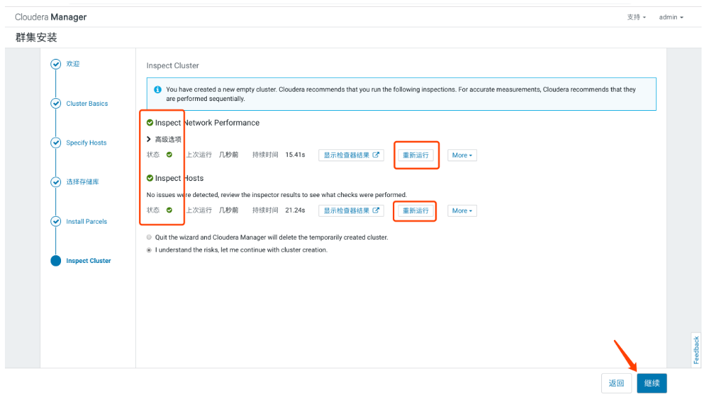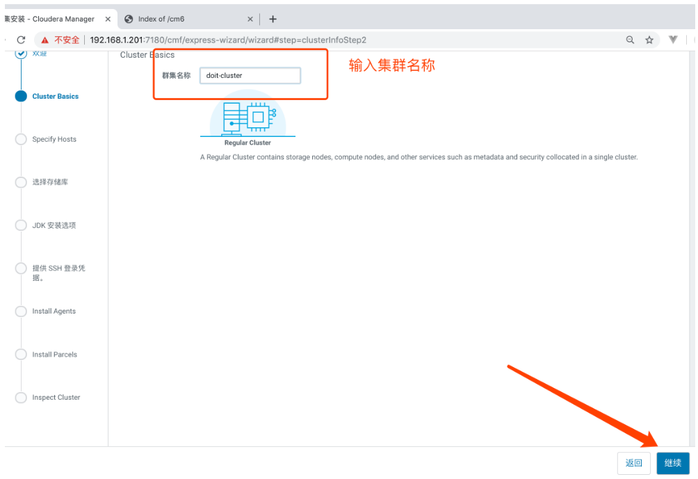 - 输入集群名称,点击继续