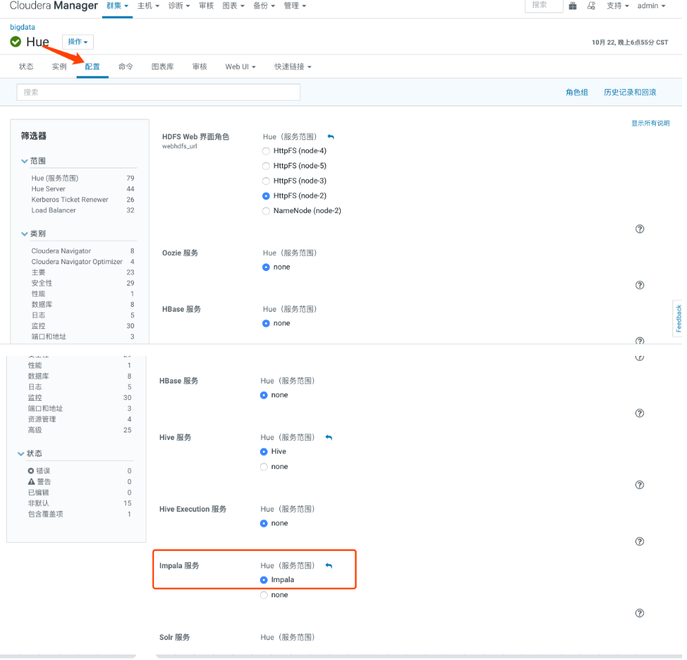 - 切换impla为hue的执行引擎,需要修改hue的配置,并且重启hue