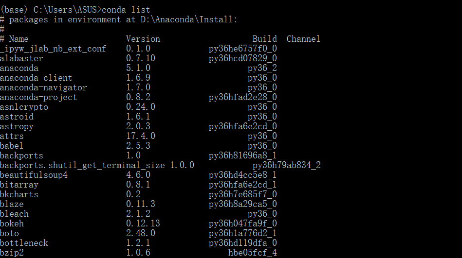 在Anaconda Prompt输入conda list成功显示出结果时,说明Anaconda安装成功啦!