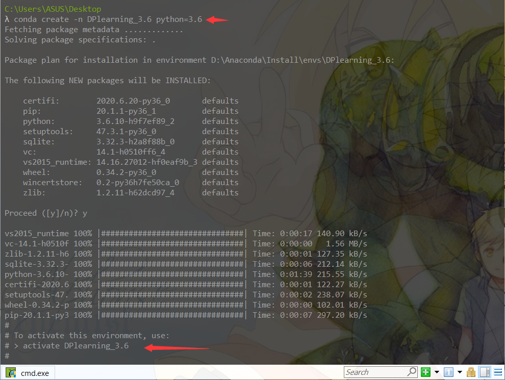 #(首先要确保自己在之前创建的DPlearning_3.6环境下)