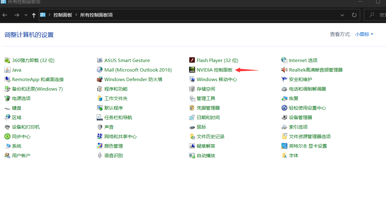 1.2、 在控制面板中点击NVIDIA控制面板。