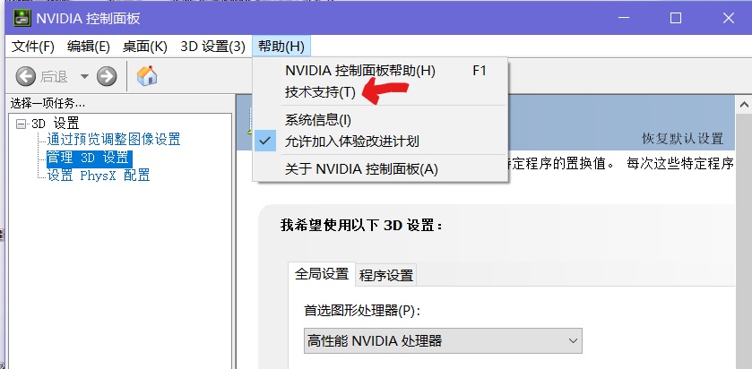 1.3、 NVIDIA控制面板中点击“帮助”下面的“系统信息”。