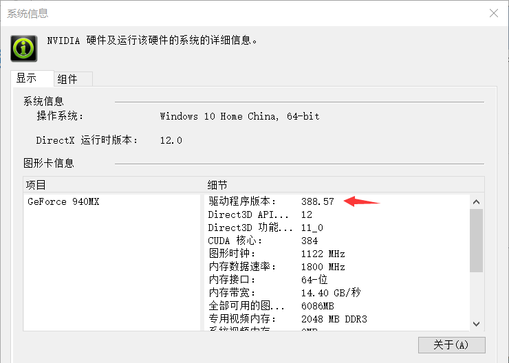 1.4 、查看驱动程序版本,我的显卡驱动版本是388.57。