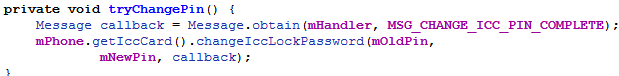 tryChangePin函数改变pin的状态为:MSG_CHANGE_ICC_PIN_COMPLETE:修改PIN;