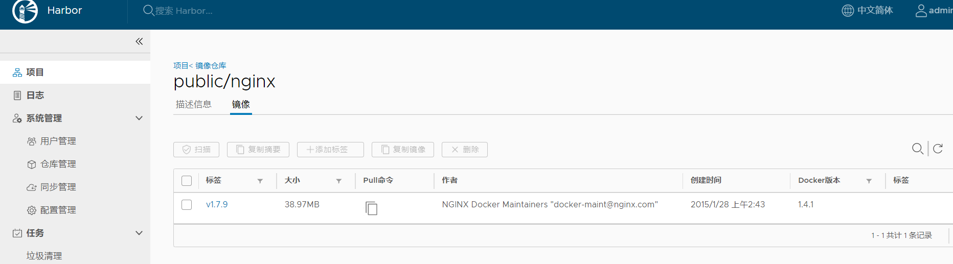 docker.io/library/nginx:1.7.916.将下载好的docker镜像本地打包,再推送到harbor私有仓库
