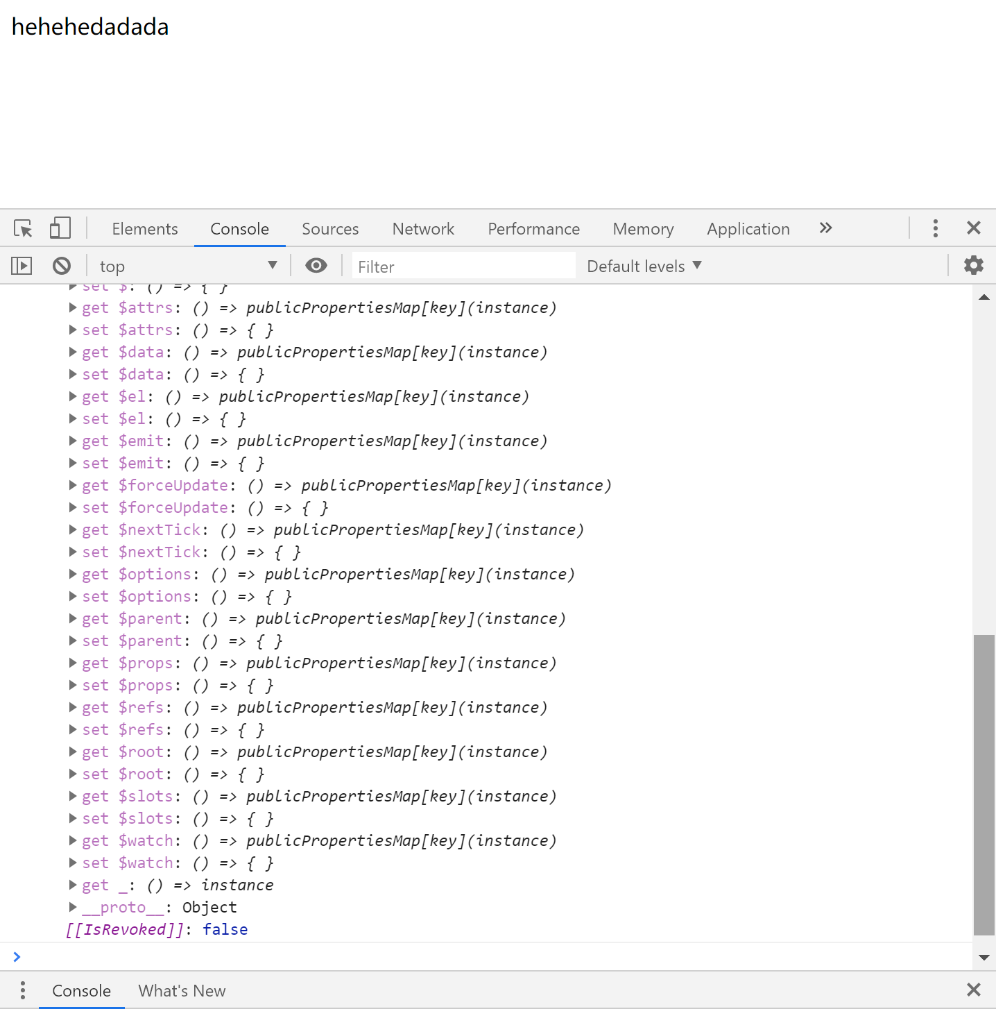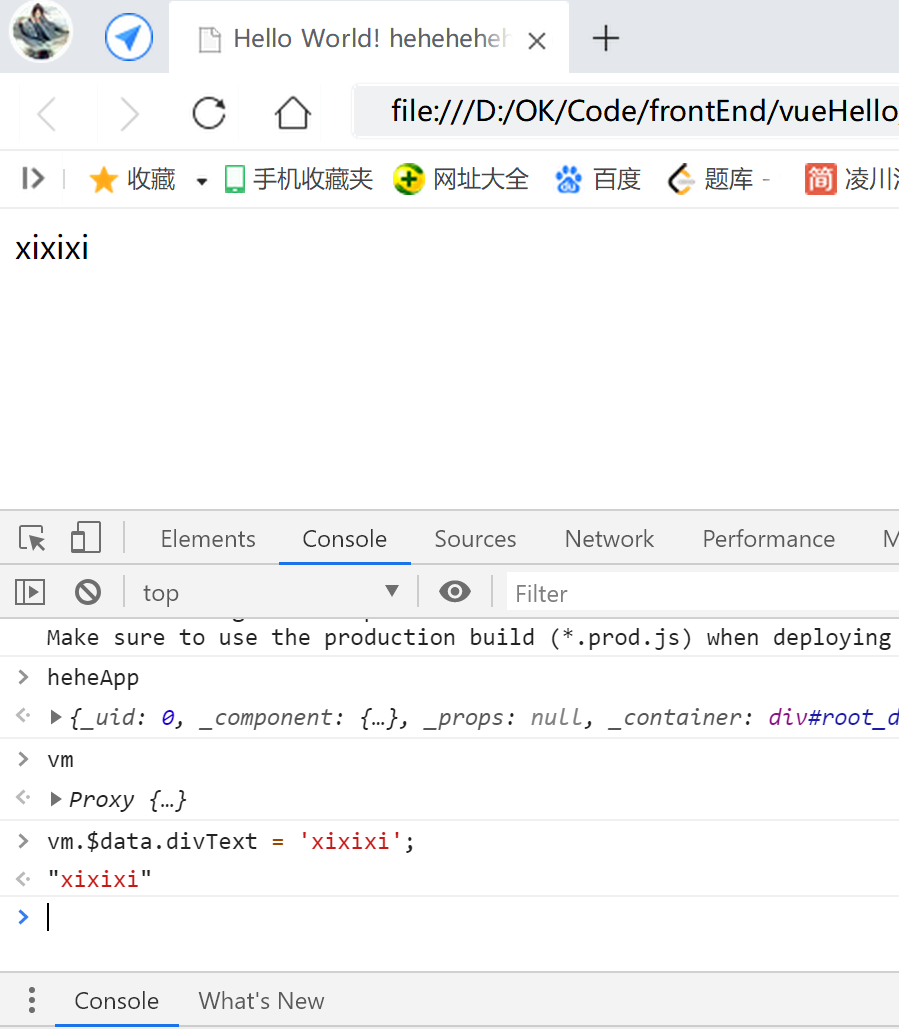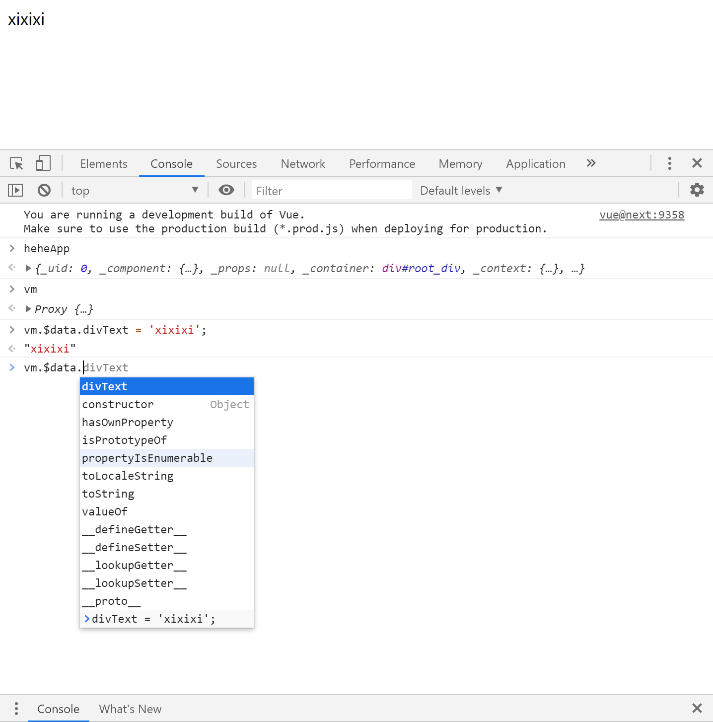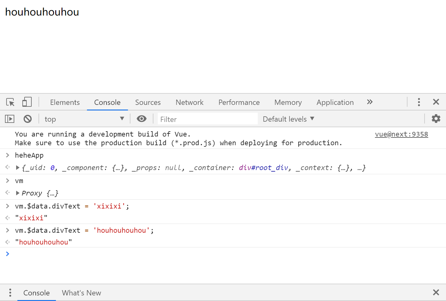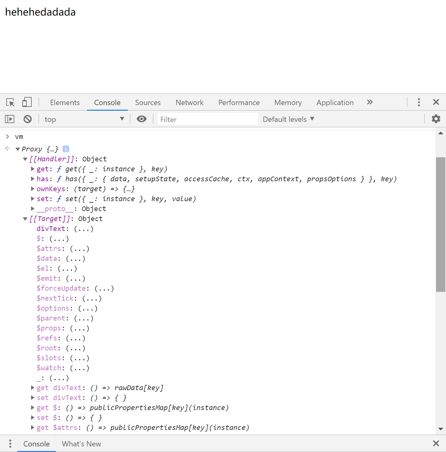 heheApp),查看实例内容:查看根组件实例vm及其内容:查看vm的字段:查看vm的data字段:对data中的数据字段赋值,