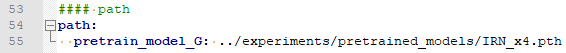 在 options/test/ 中修改 “.yml” 后缀的配置文件,添加测试集的 HR 图像与 LR 图像的存放路径。如果没有 LR 图像,可以只添加 HR 图像的存放路径。下载预训练模型(Google Drive,Baidu Drive(code: lukj)) ,并添加路径到 path 中。