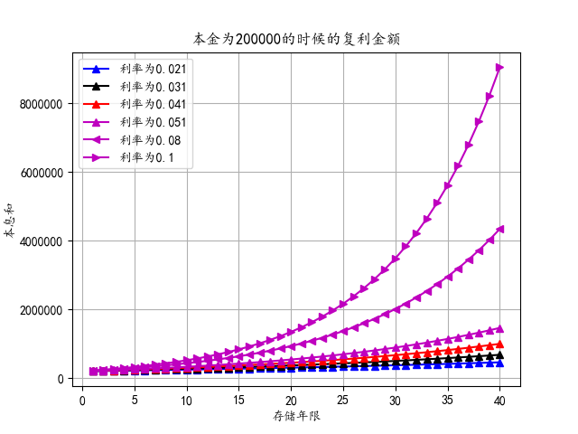f4.write("第"+str(i)+"年的本息和为:"+str(y4[i-1]).split('.')[0] + '.' + str(y4[i-1]).split('.')[1][:2]+"\n")