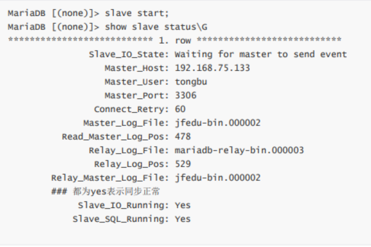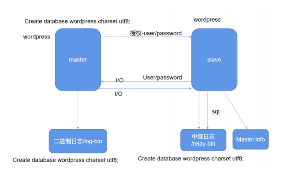 - slave开启两个线程:IO线程和SQL线程(IO/线程复制读取master的binlog内容到中继日志relay log里;SQL线程负责从relay log日志里读出binlog内容,并更新到slave 的数据库里,这样就能保证slave数据和master数据保持一致)