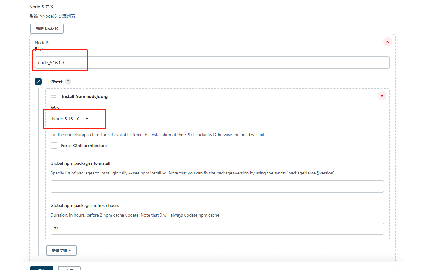 1 ) 找到NodeJS, 然后点击 新增NodeJS(有自动安装 NodeJS 环境,也可以直接使用系统安装好的NodeJS,下面使用系统安装好的NodeJS,点击 新增NodeJS之后 点击取消自动安装 NodeJS)