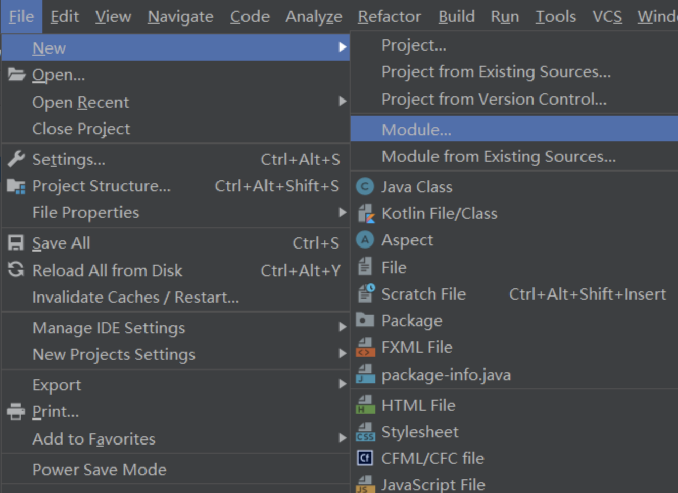 在Idea中选择新建一个module: