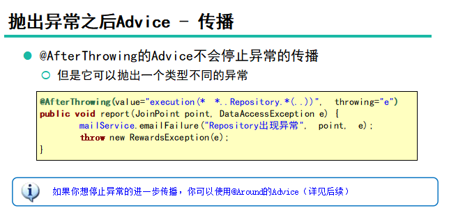 C."Around"advice 类型可以吞没或阻止目标方法抛出的异常的传播