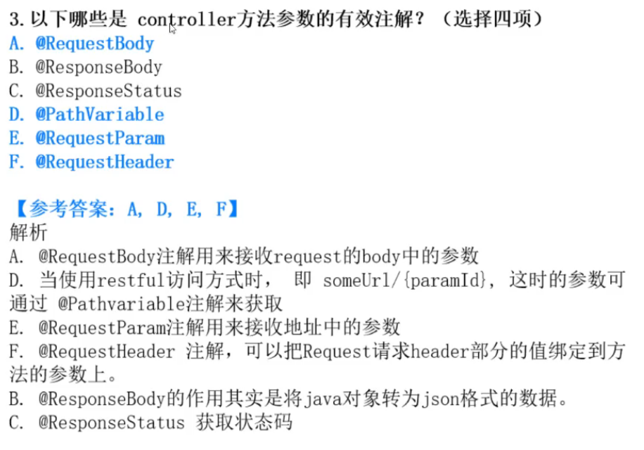 37 以下哪些是 controller 方法参数的有效注解?(选择四项)