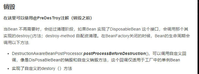 【答案解析】销毁容器时,可以使用@PreDestroy注解,在该bean销毁之前执行一个逻辑方法,而不是调用另一个bean。