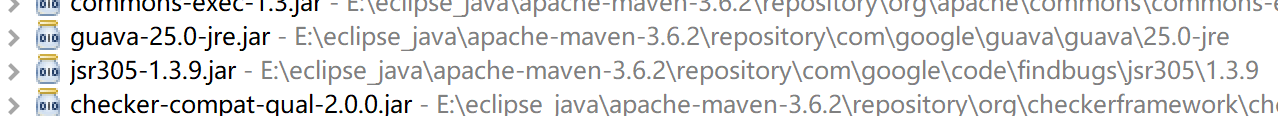 划重点!以上简单粗暴的方法,不得不说,非常好用,但是!当我打包后试图放服务器上跑时,又出错了,因为毕竟时外部导入方式,打包进去总出问题,所以经过我每个jar包依次导入尝试之后发现,其实导致这个错误的就只有一个包:guava-25.0-jre.jar。我去maven仓库找了这个版本的包放在pom.xml中,update一下之后,依旧出错,原因上面已经解释过了,那么怎么办呢?很简单,就去下载的jar包文件中找到这个包(图中的libs里面),替换掉本地仓库中的这个包就可以了。(本地仓库中它的位置可以在你的项目的maven依赖中找到,比如我的:)