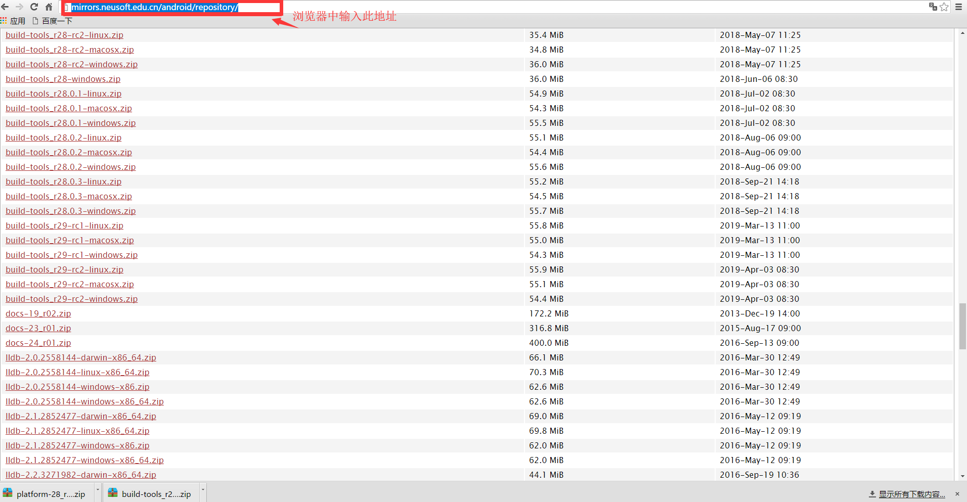 第一步: 浏览器输入“http://mirrors.neusoft.edu.cn/android/repository/ ”