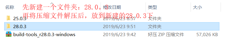 第三步:1)在C:\Program Files (x86)\Android\android-sdk\build-tools下新建28.0.3文件夹,再将对应的压缩文件的解压内容放到新建的文件夹中