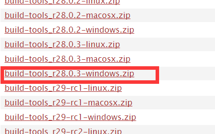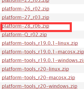 第二步:下载如下两个文件:下载第一个文件platform-28_r06.zip,第二个:build-tools_r28.0.3-windows
