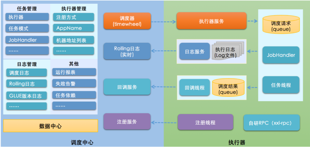- 注意,左边是调度中心,右边是执行器。