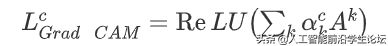 Grad-CAM的基本思路和CAM是一致的,也是通过得到每对特征图对应的权重,最后求一个加权和。但是它与CAM的主要区别在于求权重w_{k}^{c}的过程。CAM通过替换全连接层为GAP层,重新训练得到权重,而Grad-CAM另辟蹊径,用梯度的全局平均来计算权重。事实上,经过严格的数学推导,Grad-CAM与CAM计算出来的权重是等价的。为了和CAM的权重做区分,定义Grad-CAM中第k个特征图对类别c的权重为a_{k}^{c},可通过下面的公式计算: