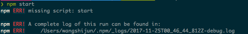 和 test 类似,start 也是 npm 内置支持的命令,但是需要先在 scripts 字段中声明该脚本的实际内容,如果没声明就执行 npm start,会直接报错。如下图所示: