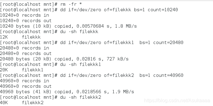 截取三个大小不一样的文件 filekkk filekkk1 filekkk2 (12k,20k,40k):
