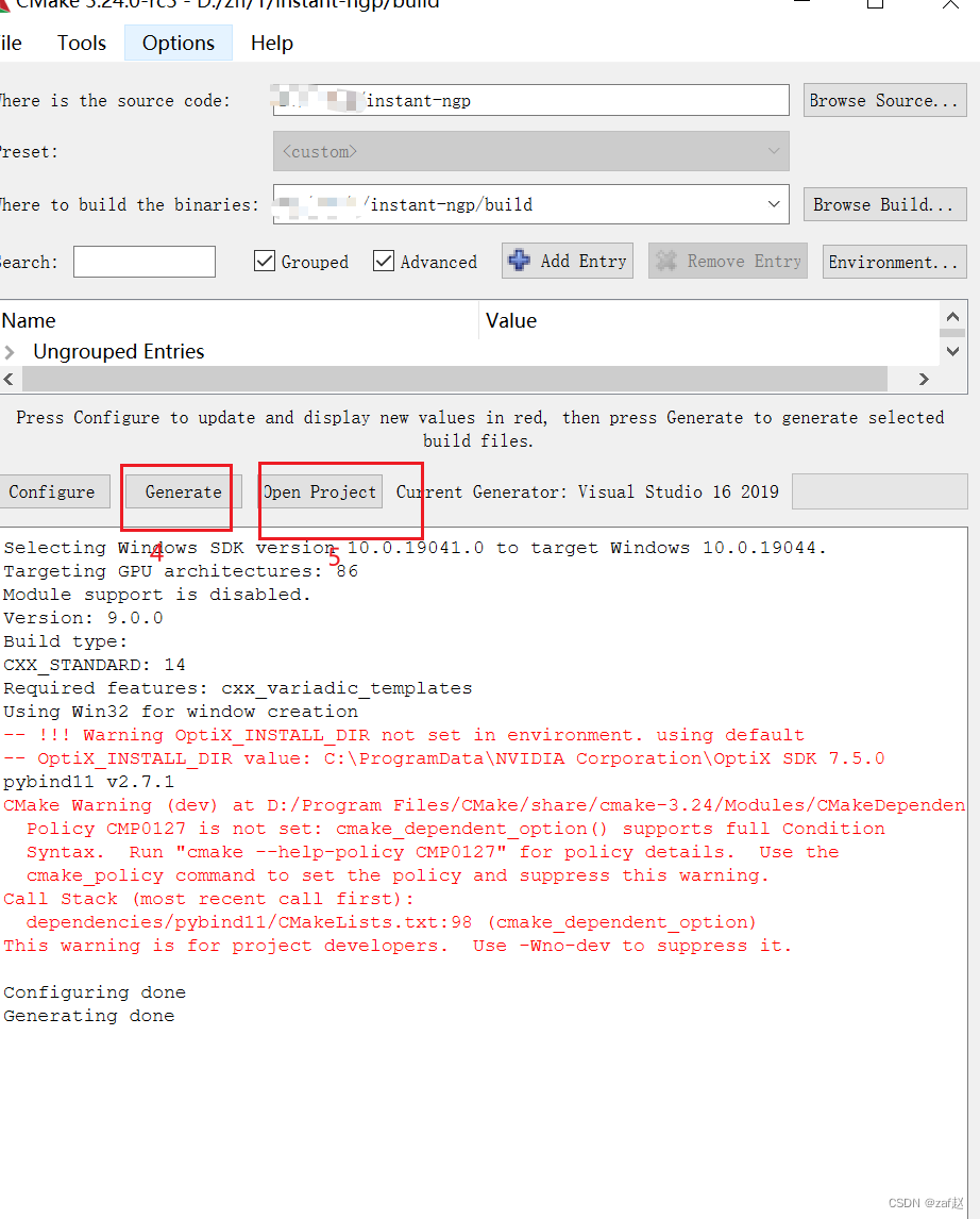 红色警告不需要注意,点击Generate没有报错后,再点击Open Project