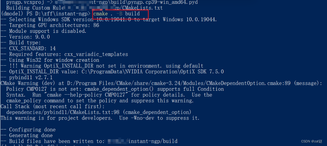 由于本机显卡nvidia rtx3090算力值为86 需要在CMakeLists.txt 中增加set(CMAKE_CUDA_ARCHITECTURES 86)