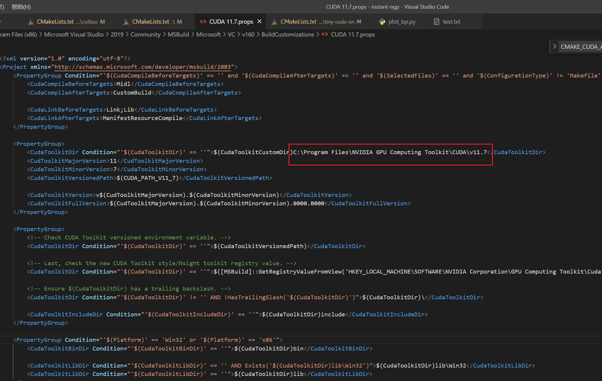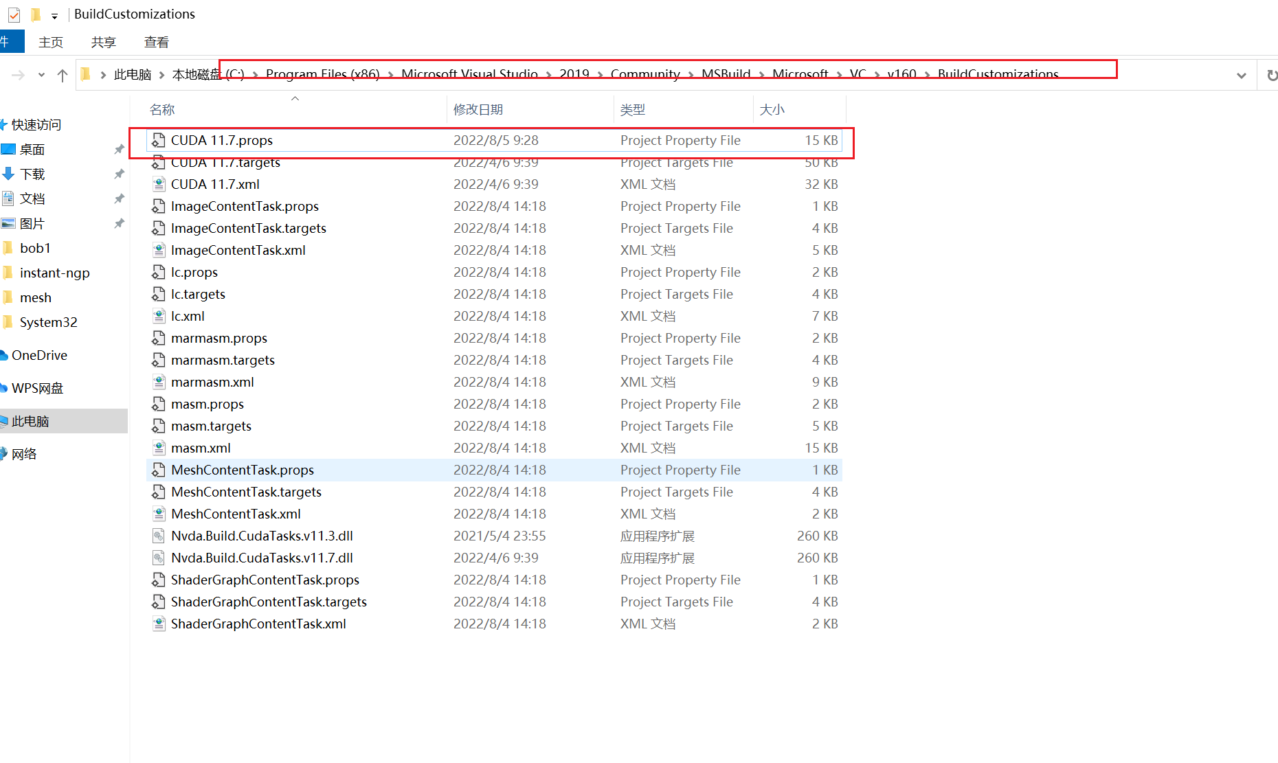 CUDA 11.7.props修改