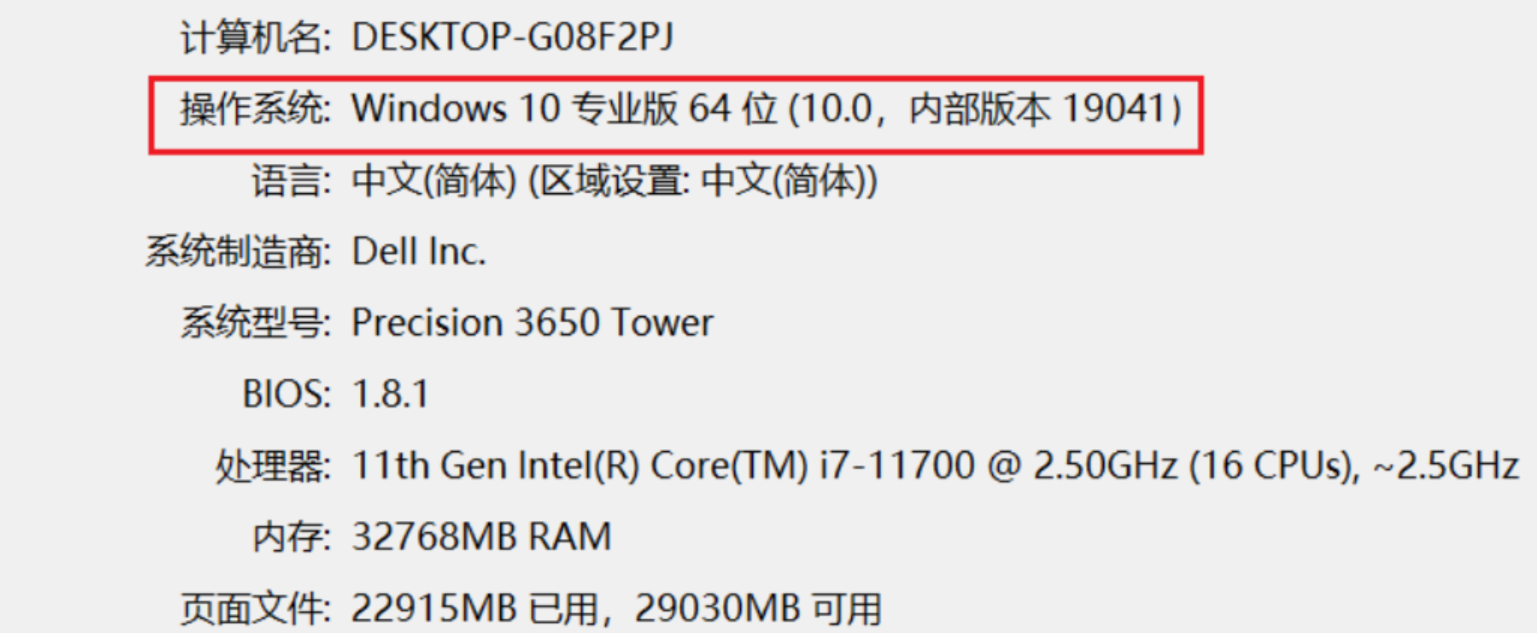 显示结果 系统内部版本如果是19041,如下所示: