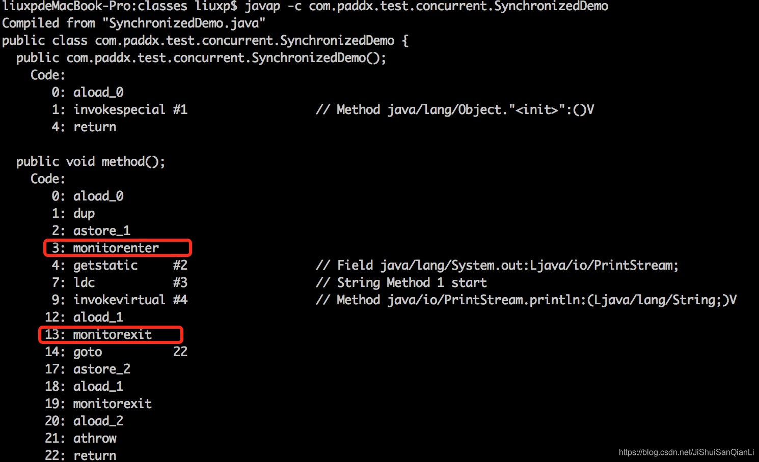 每个对象有一个监视器锁(monitor)。当monitor被占用时就会处于锁定状态,线程执行monitorenter指令时尝试获取monitor的所有权,过程如下: