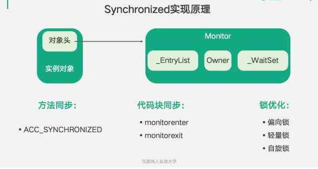 monitor对象存在于每个Java对象的对象头中(存储的指针的指向),synchronized锁便是通过这种方式获取锁的,也是为什么Java中任意对象可以作为锁的原因,同时也是notify/notifyAll/wait等方法存在于顶级对象Object中的原因