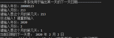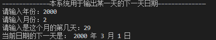 print("——————————————本系统用于输出某一天的下一天日期——————————————")