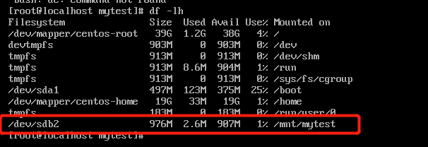 mount -t ext4 /dev/sdb2 /mnt/mytest七、进入挂载路径,验证是否挂载成功