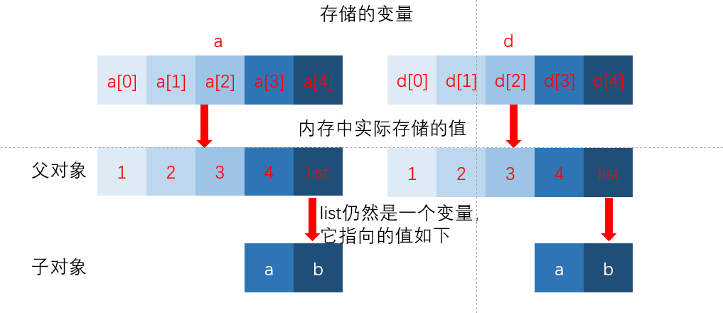 浅复制,只会拷贝父对象, 不会拷贝父对象中的子对象,所以若a的子对象变则c 变,但是父对象变c不会变。