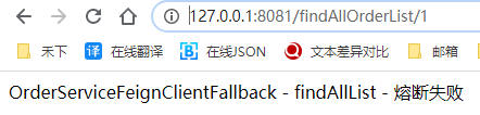 return "OrderServiceFeignClientFallback - findAllList - 熔断失败";