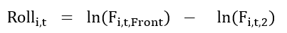 在对冲压力假说(Cootner,1960)和仓储理论(Working,1949)的双重推动下,期限结构策略利用了商品的展期收益率信号,通过在展期收益率较高(较低)的合约上建立多(空)头寸。前一种理论认为,更高的展期收益率是由净空头套期保值者的过度供应推动的,这压低了期货价格,导致更高的展期收益率。相反,较低的展期收益率是由净多头套期保值工具的过度供应造成的,这导致了期货价格的上涨(Fuertesetal.,2010)。后一种理论认为,较高的展期产量是由于较高的当前产量,导致较低的库存水平(Gorton,Hayashi,&Rouwenhorst,2013)。我们计算商品i在t时刻的展期收益率为: