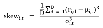 库存理论和正常现货溢价理论隐含地表明,负偏态与库存下降驱动的反向市场一致(Fama&French,1987;Deaton&Laroque,1992;Symeonidis,Prokopczuk,Brooks,&Lazar,2012;戈顿等人,2013)。Fernandez-Perez 等人(2018a)研究了偏度排序的多空投资组合的盈利能力,发现了具有统计学意义的利润。我们沿袭 Fernandez-Perez 等人(2018a)的研究,计算偏度信号为: