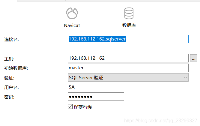 用户名默认是SA 密码就是创建容器的时候参数中的密码,